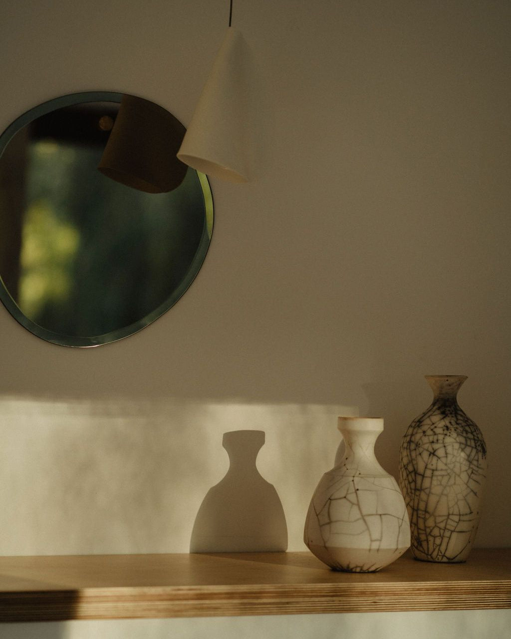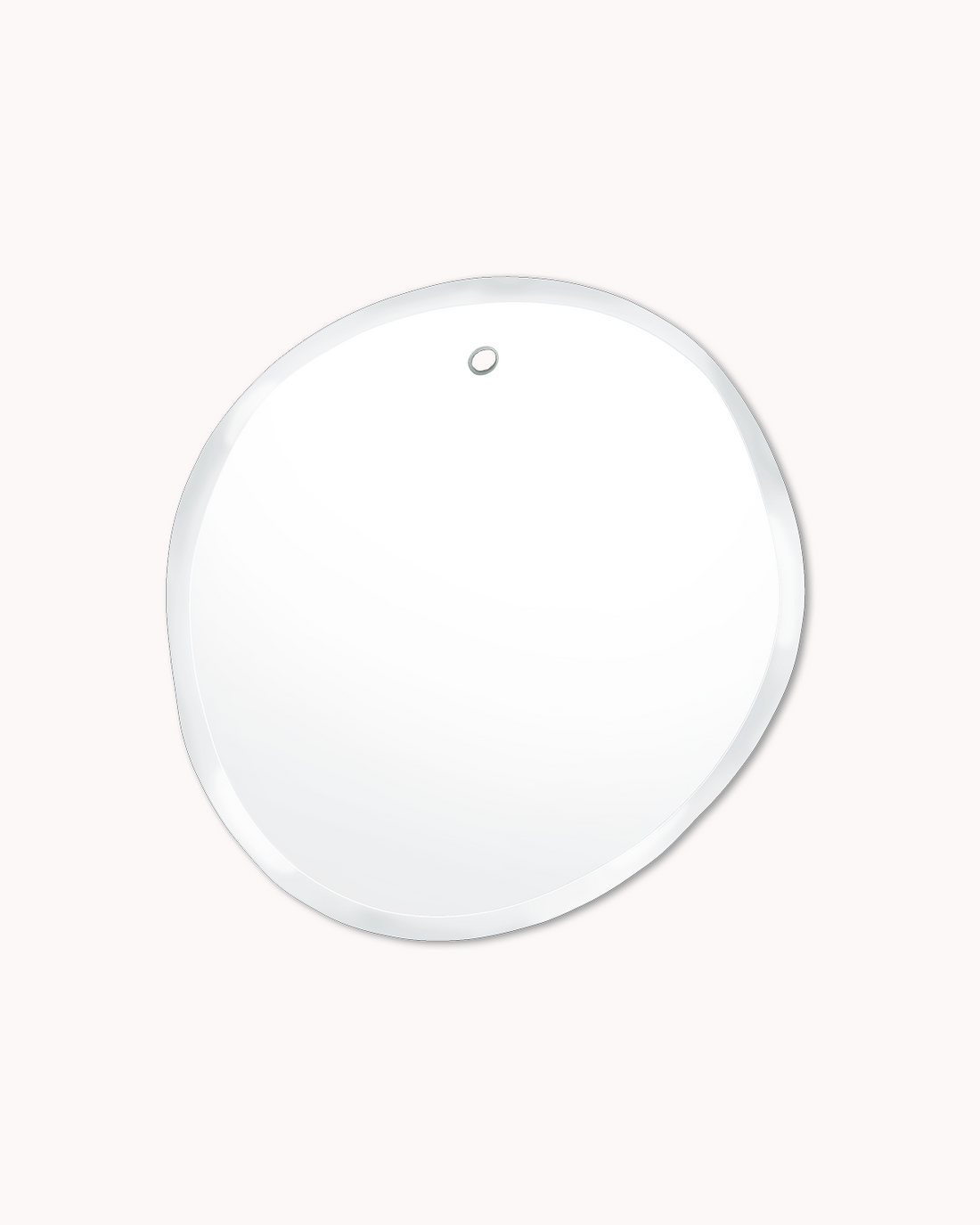 Miroir éco-responsable en verre français, découpé et biseauté à la main dans un atelier artisanal près de Porto, il est unique par son biseau irrégulier. Ce contour capte la lumière et crée un halo subtil autour du reflet.