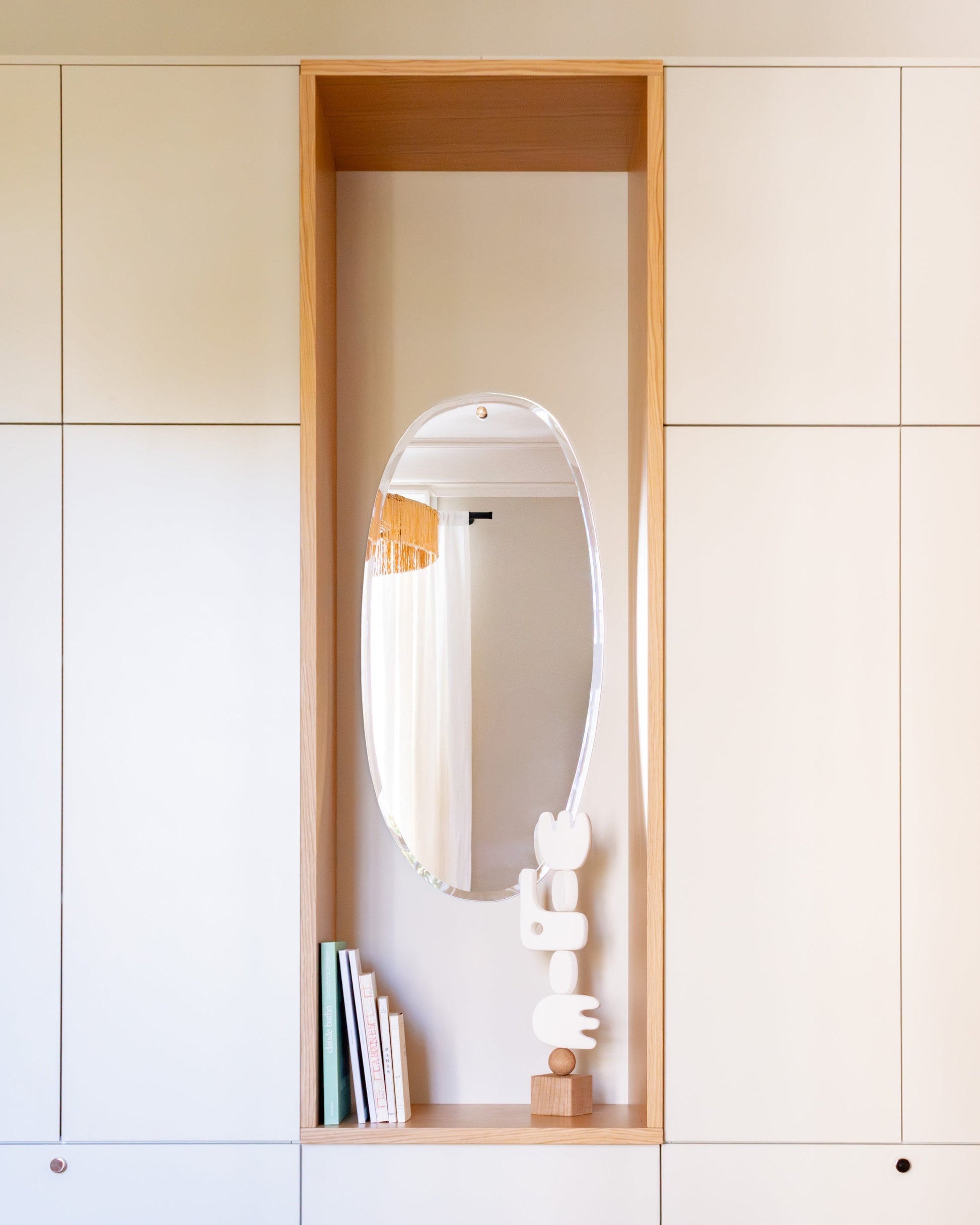 Son format allongé permet de se voir en pied. Idéal dans une entrée ou une chambre, il peut aussi donner une dimension longiligne au-dessus d’une vasque, en salle de bain. Il apporte de la verticalité et allège le mur sans prendre toute la place.