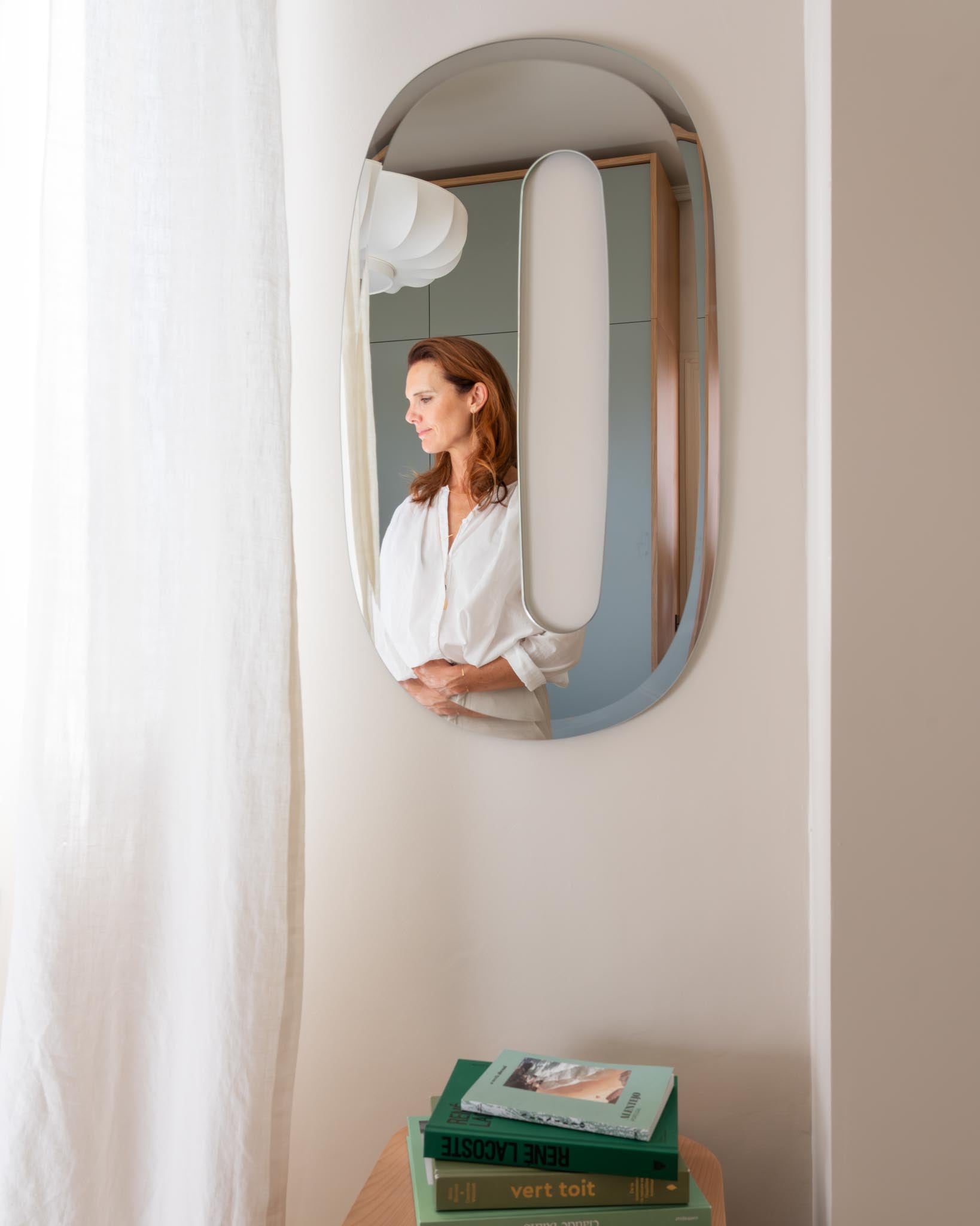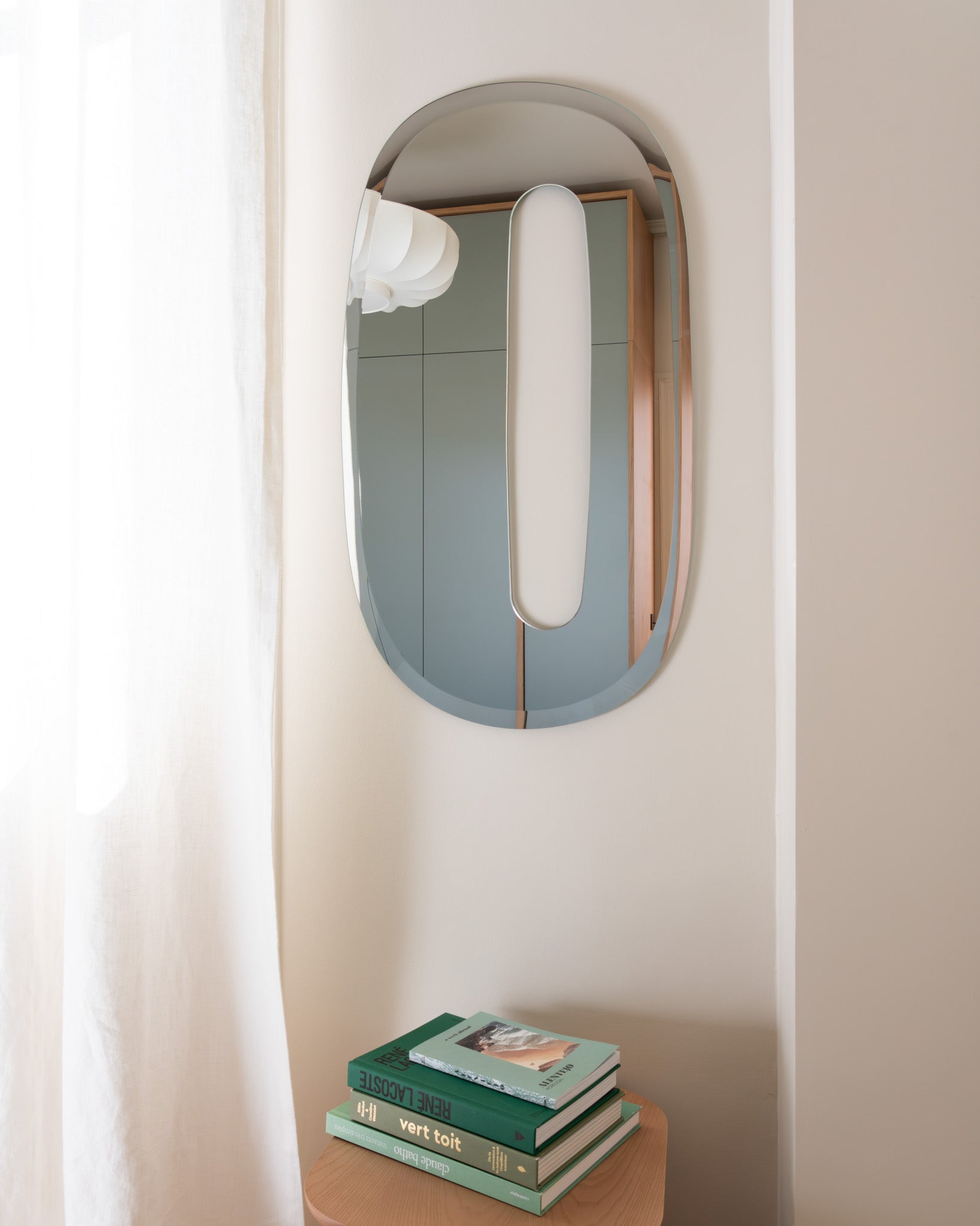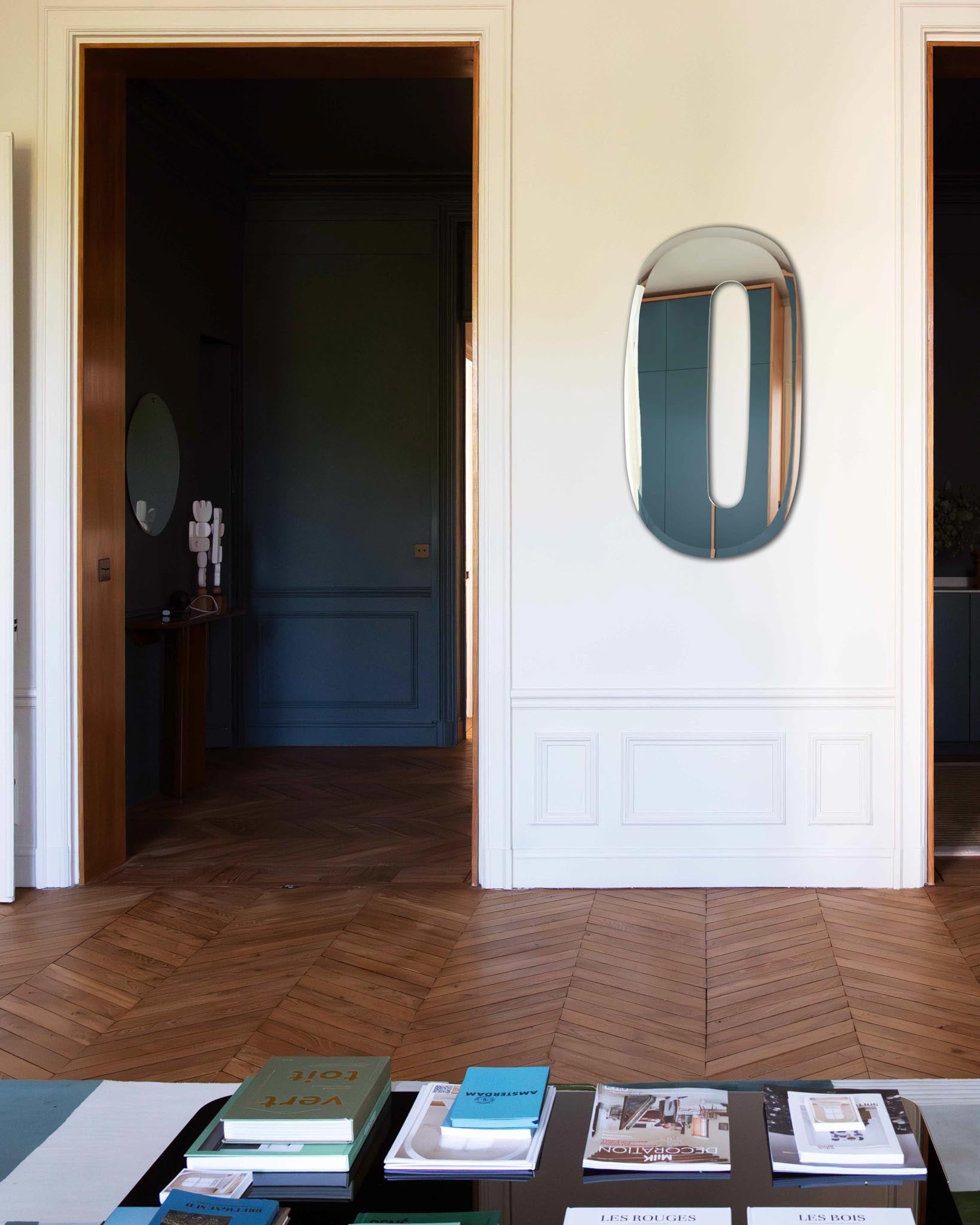 Kos, un miroir percé, sculptural, imaginé comme une flaque d’eau figée dans le temps. Sa forme organique joue avec les contrastes et la transparence : au centre, une ouverture laisse apparaître la couleur de votre mur ou le motif de votre papier peint, créant un dialogue subtil entre le miroir et son environnement. Ce jeu d’absence et de reflet engendre des illusions d’optique douces et poétiques. À la fois sobre, singulier et intemporel, il insuffle une touche énigmatique à votre intérieur. Le miroir Kos est éco-responsable en verre 100 % français